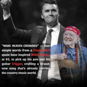 “MAKE HEAVEN CROWDED” — four simple words from a Charlie Kirk quote have inspired Willie Nelson, at 93, to pick up his pen and his guitar Trigger, crafting a brand-new song that’s already stirring the country music world. In private rehearsals, the unreleased track has created a quiet storm: fans describe it as “a prayer turned into melody,” laced with faith, love, and legacy. “It gave me chills… I’ve never heard anything like it,” one fan shared. This isn’t just another Willie Nelson song — it’s being hailed as a living message, a spiritual testament from an outlaw poet whose voice, after seven decades, still carries the power to touch millions of hearts across generations.