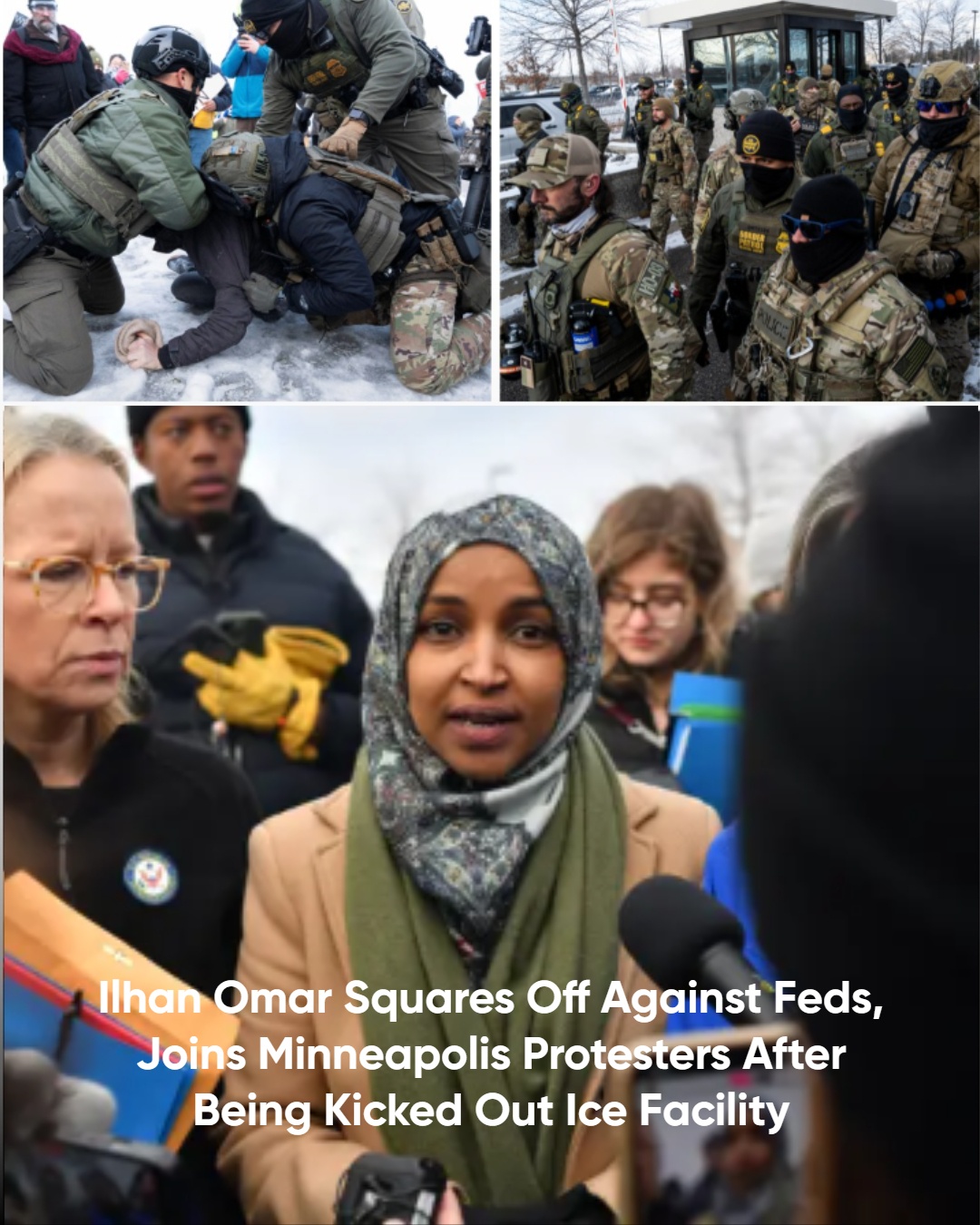 Congresswoman Ilhan Omar (D-MN) squared off against federal agents at an ICE facility in Minneapolis on Saturday, joining protesters after she was kicked out of the detention center.